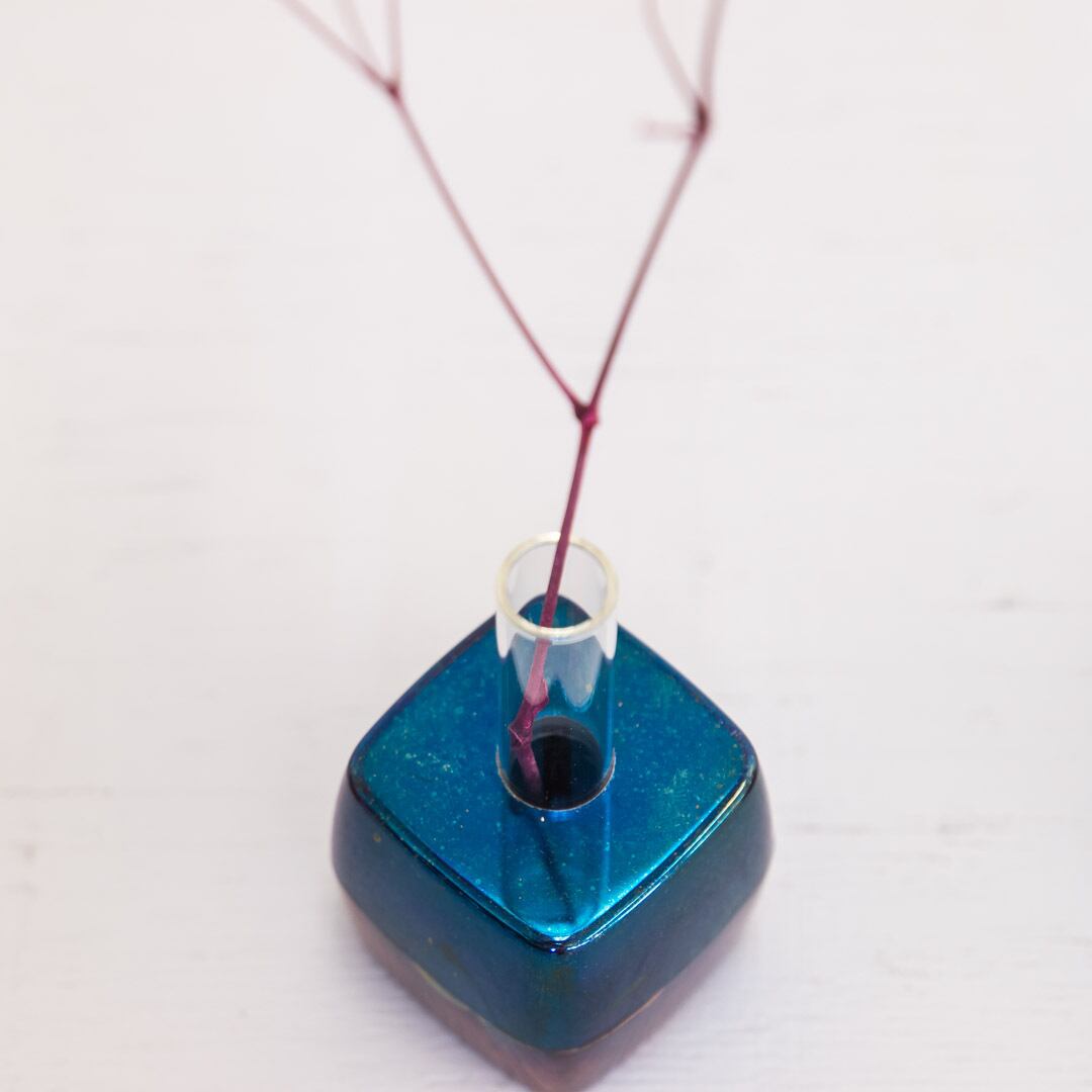 付属のパイプを差し込んで花を飾れば「一輪挿し」に、パイプを外して鉛筆や細いペンを立てるを立てることも可能なマルチベースです。
