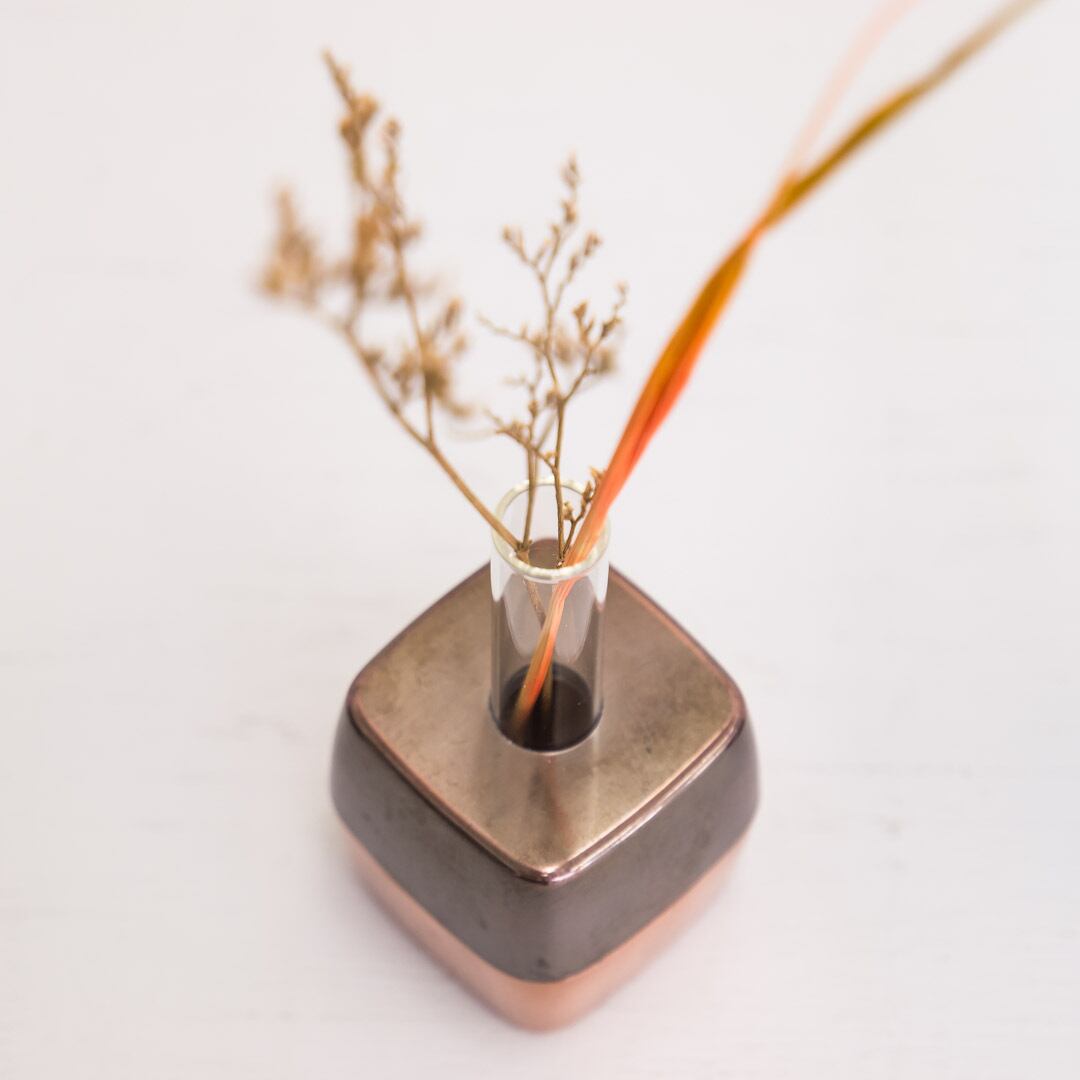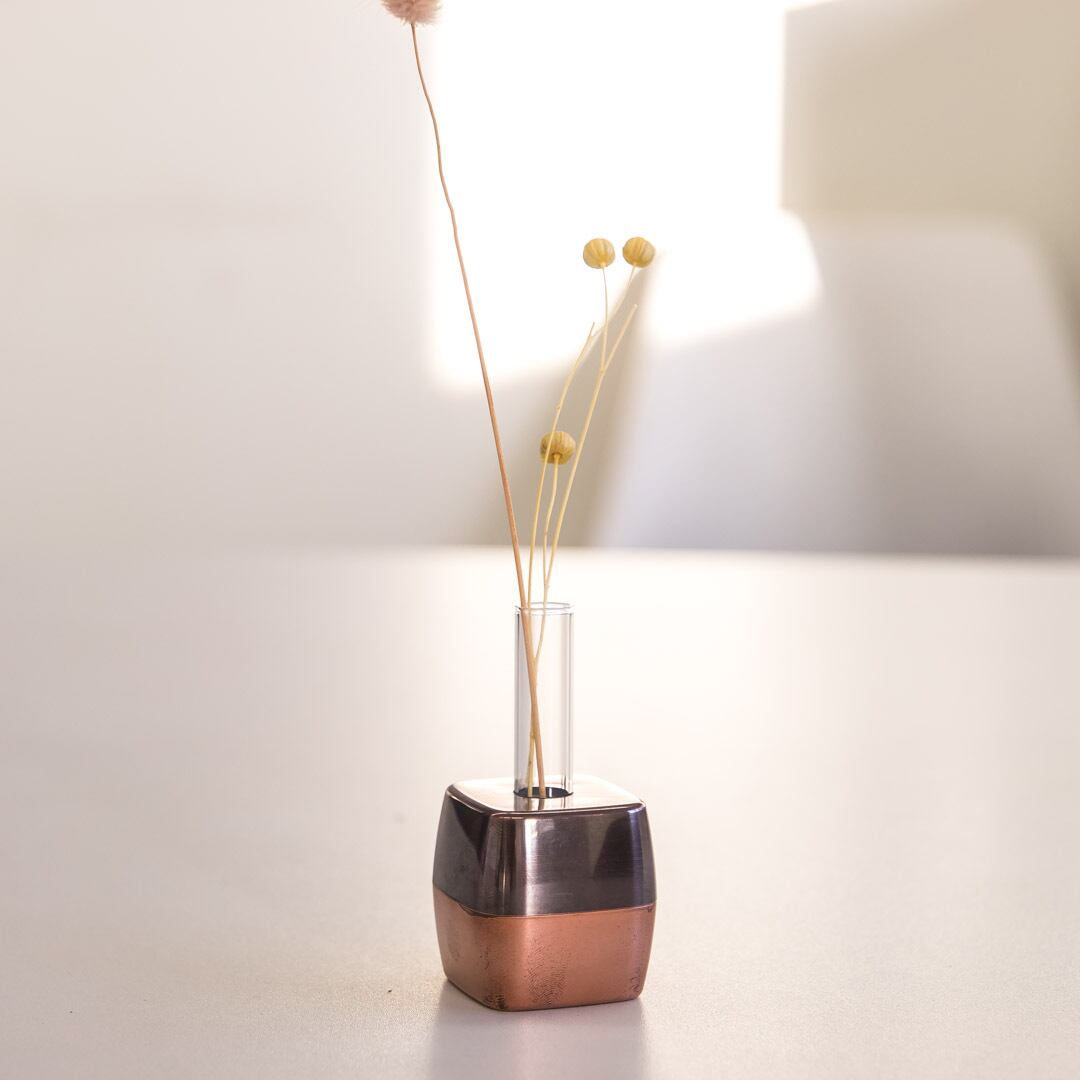 付属のパイプを差し込んで花を飾れば「一輪挿し」に、パイプを外して鉛筆や細いペンを立てるを立てることも可能なマルチベースです。