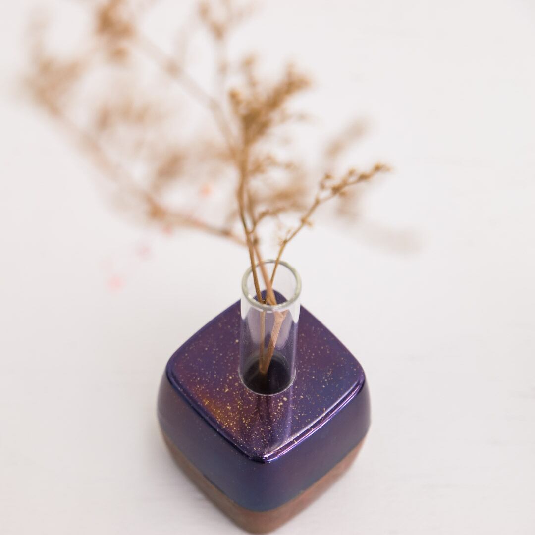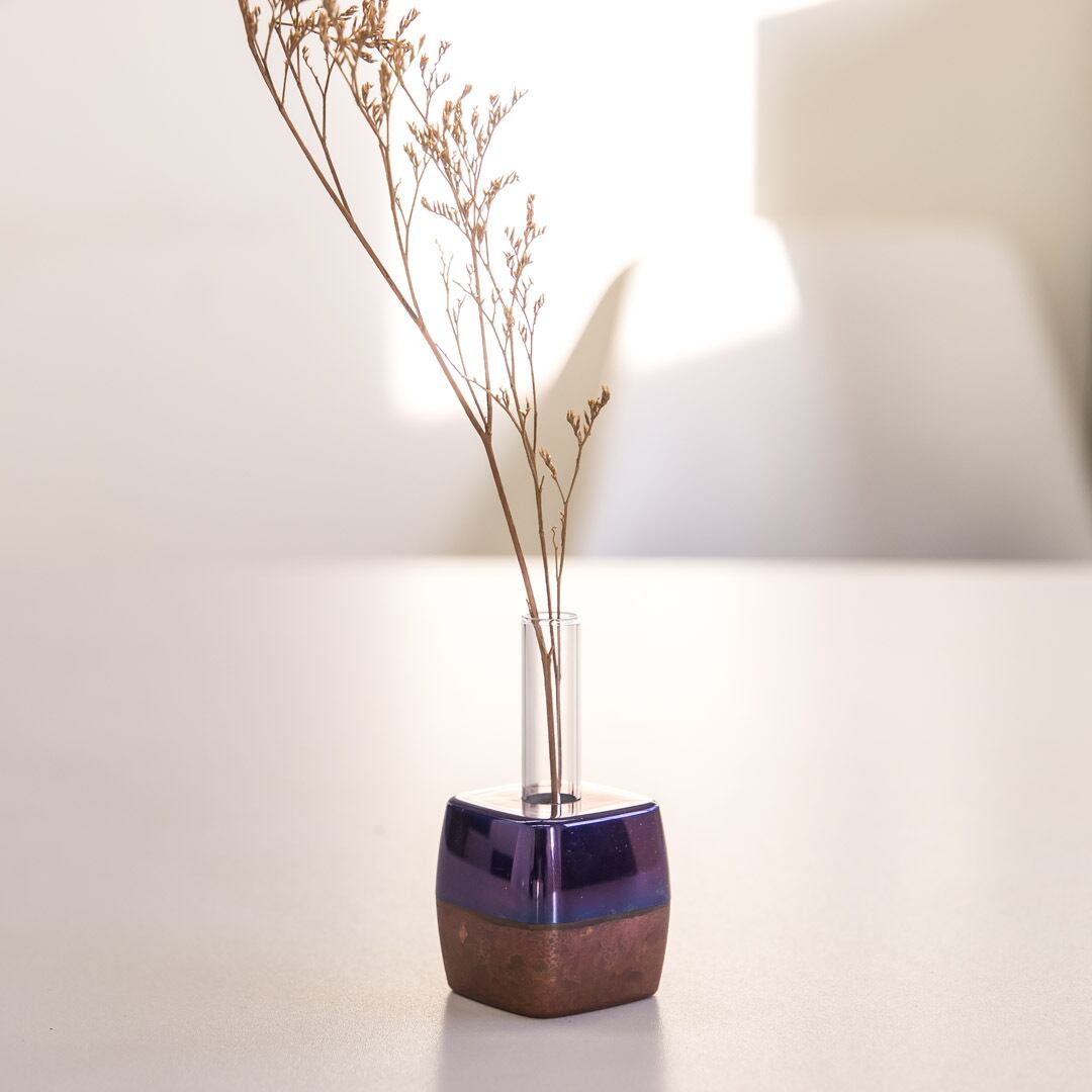 付属のパイプを差し込んで花を飾れば「一輪挿し」に、パイプを外して鉛筆や細いペンを立てるを立てることも可能なマルチベースです。