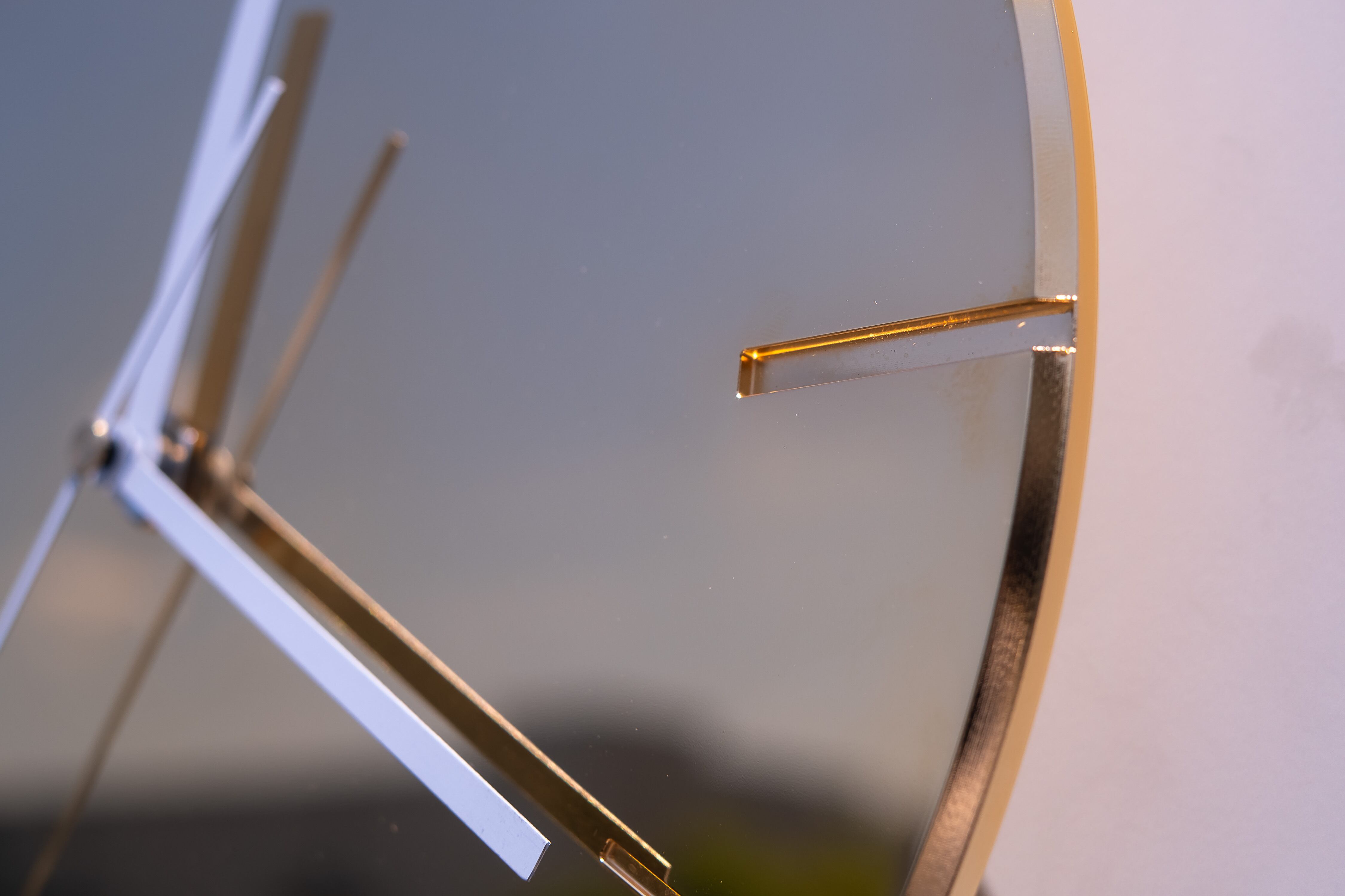 創業100年のめっき技術により、表面にはホンモノの金属を形成。差し込むひかりや照明の変化、朝・昼・夜のひかりの移ろいによって、針を読むというより感覚的に時の流れを感じることができます。