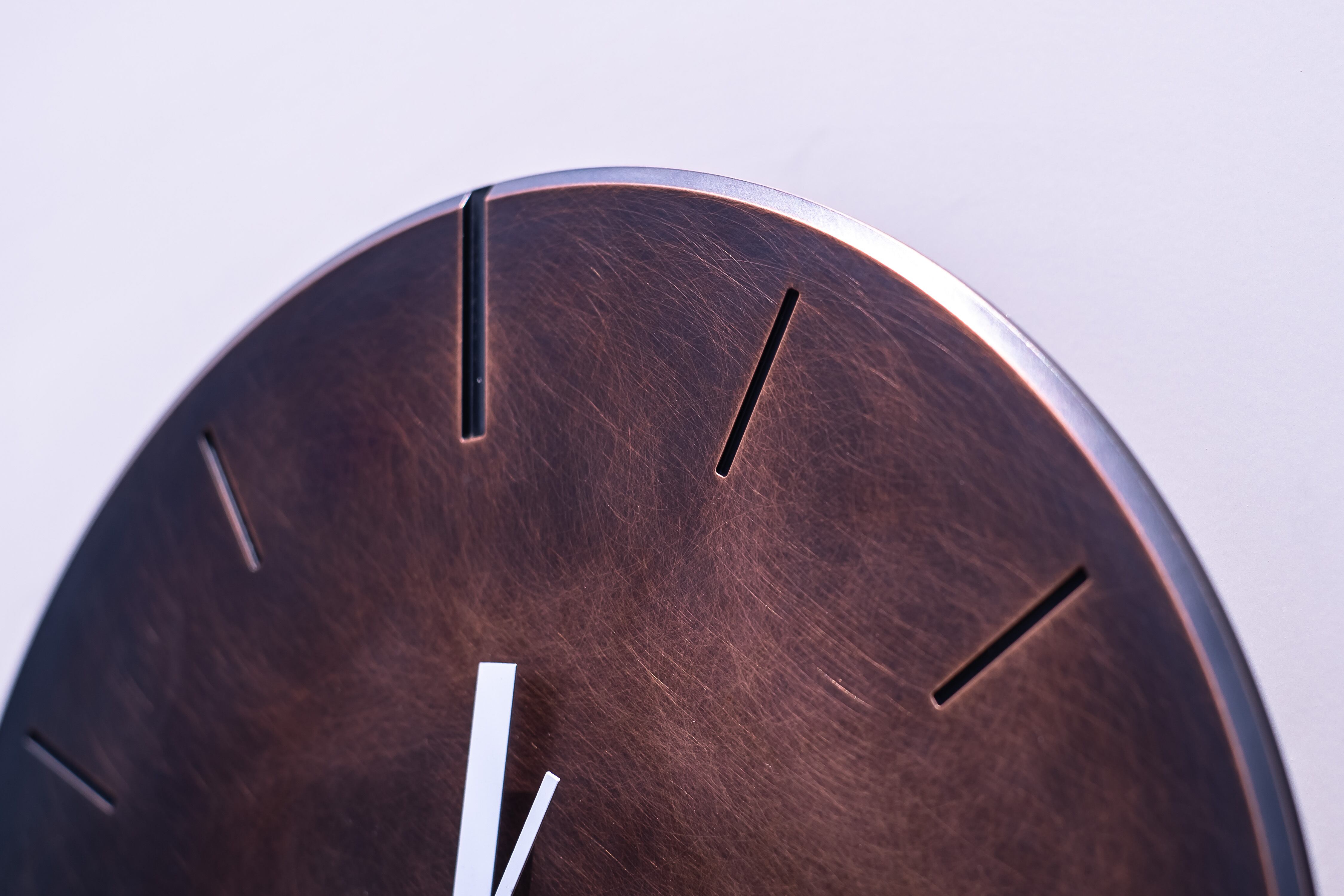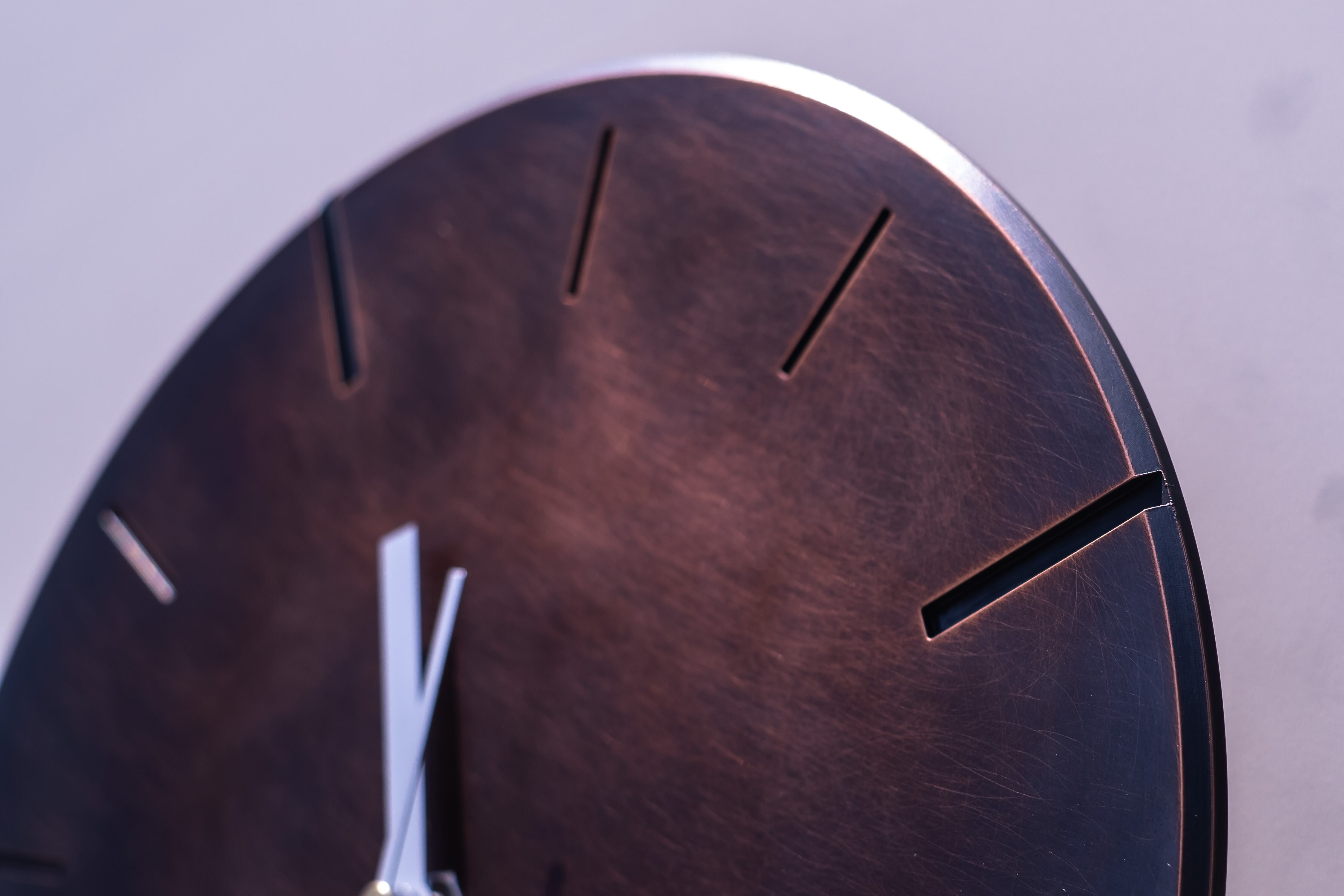 創業100年のめっき技術により、表面にはホンモノの金属を形成。差し込むひかりや照明の変化、朝・昼・夜のひかりの移ろいによって、針を読むというより感覚的に時の流れを感じることができます。
