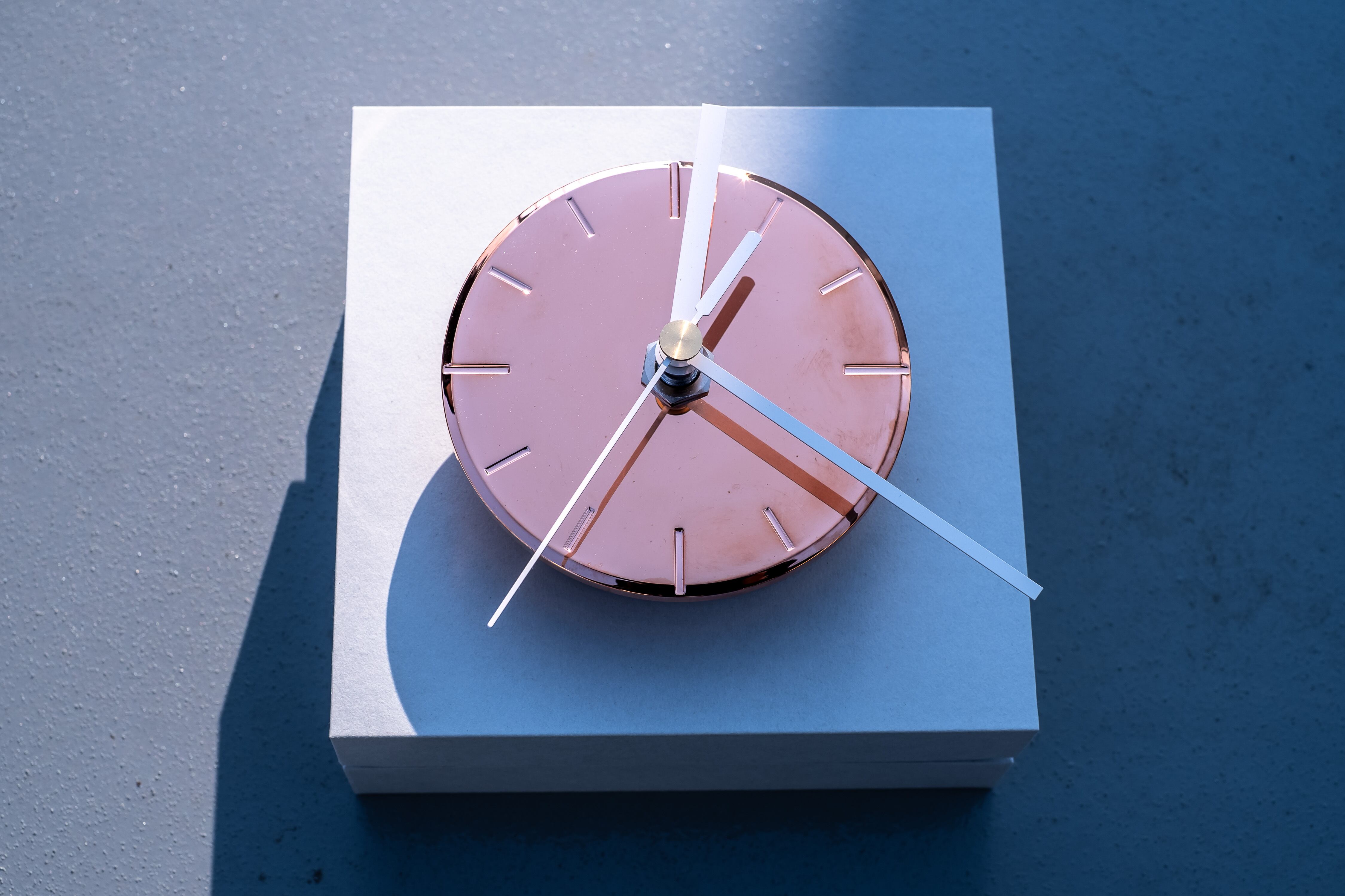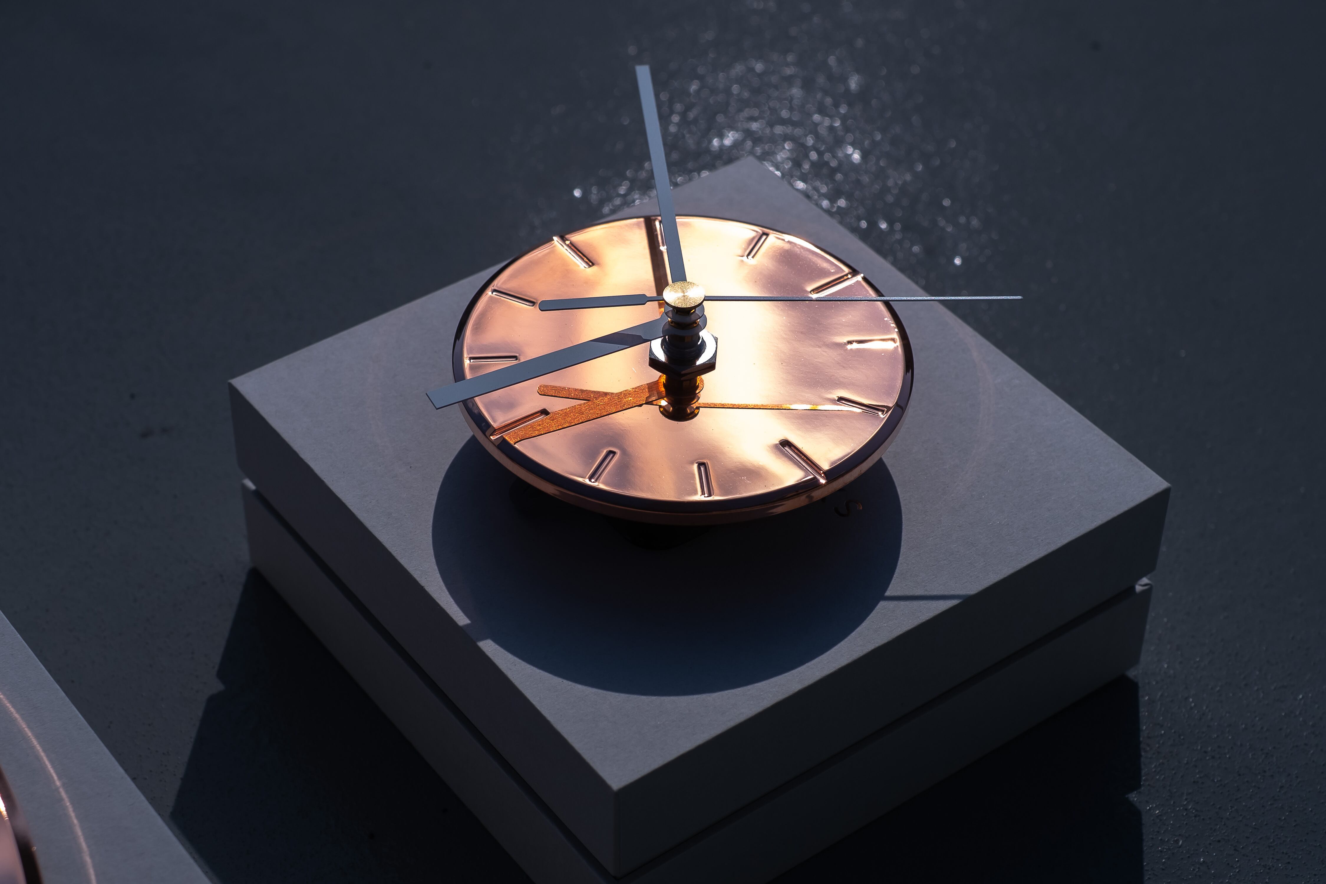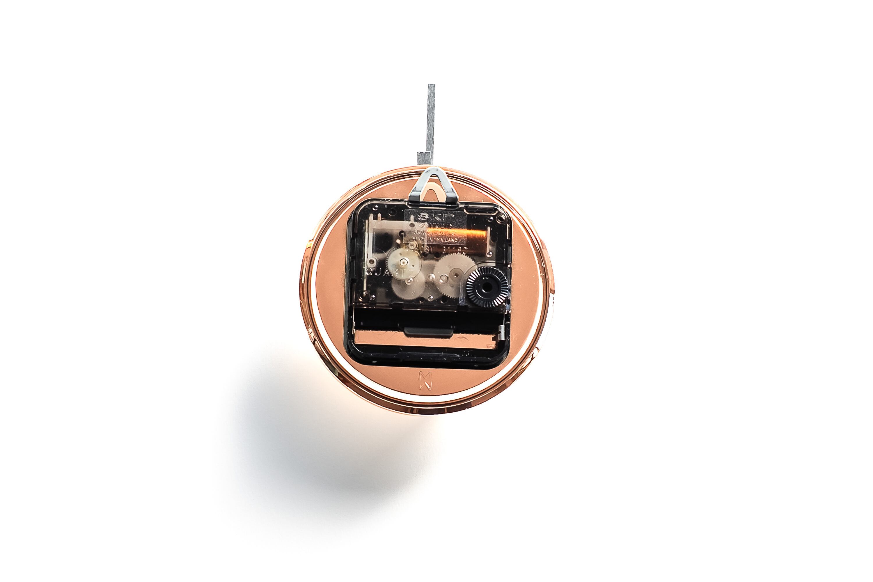 創業100年のめっき技術により、表面にはホンモノの金属を形成。差し込むひかりや照明の変化、朝・昼・夜のひかりの移ろいによって、針を読むというより感覚的に時の流れを感じることができます。